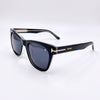 Gafa de sol para hombre , con forma cuadrada , fabricada en acetato negro transparente y con lentes grises .