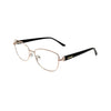 Gafa fabricada en metal con acetato en dorado rosado y varillas en negro de alta calidad, un material resistente, ligero y cómodo para el uso diario. Su montura refleja la sofisticación de los cafés vieneses. Diseñadas para ofrecer una visión clara, combinan funcionalidad y estilo con el sello distintivo de la marca.