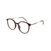 Gafa fabricada en acetato en burdeos con detalle en varilla de brillo de alta calidad, un material resistente, ligero y cómodo para el uso diario. Su montura refleja la sofisticación de los cafés vieneses. Diseñadas para ofrecer una visión clara, combinan funcionalidad y estilo con el sello distintivo de la marca.