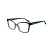 Gafa fabricada en acetato marrón con detalle estampado en el frontal y varilla en azul de alta calidad, un material resistente, ligero y cómodo para el uso diario. Su montura refleja la sofisticación de los cafés vieneses. Diseñadas para ofrecer una visión clara, combinan funcionalidad y estilo con el sello distintivo de la marca