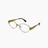 Gafa fabricada en acetato en dorado. Elaborada en un material resistente, ligero y cómodo para el uso diario. Una pieza perteneciente a una colección pensada para espíritus modernos que aprecian la belleza de lo esencial