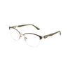 Gafa fabricada en metal con acetato en rosado y detalle en varilla de alta calidad, un material resistente, ligero y cómodo para el uso diario. Su montura refleja la sofisticación de los cafés vieneses. Diseñadas para ofrecer una visión clara, combinan funcionalidad y estilo con el sello distintivo de la marca.